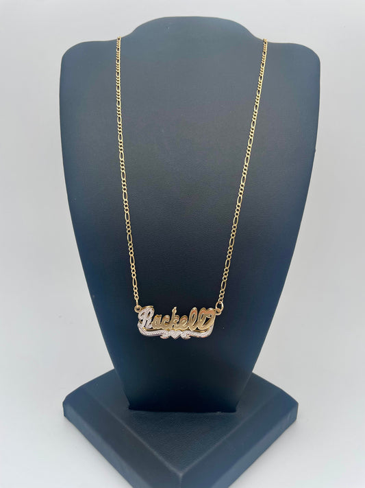 10k Gold Name Necklace with Figaro Chain